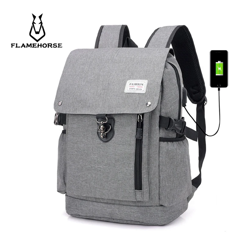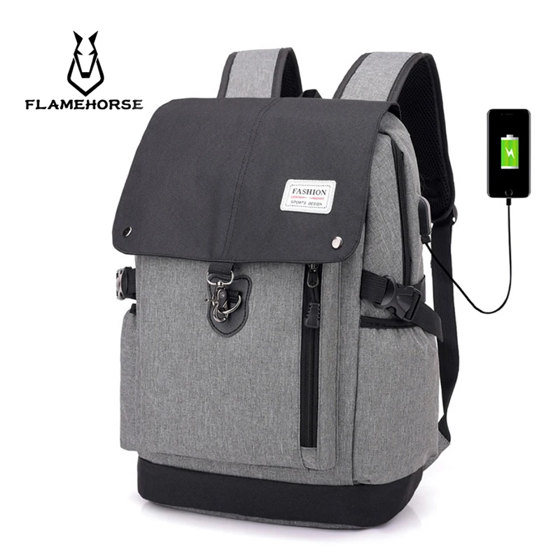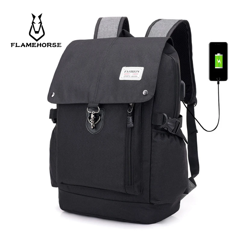 FLAME HORSE 2019 Hot Sale Canvas Backpack Women School Bags for Girls Large Capacity USB Charge Men