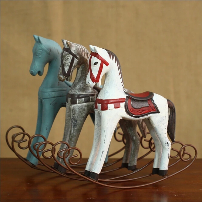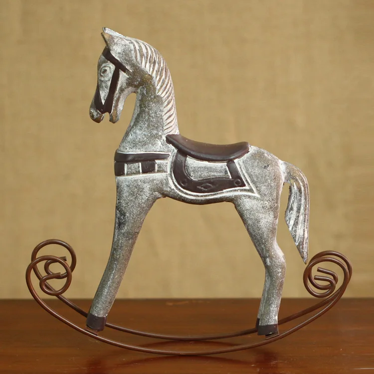 Shabby Chic Style Wooden Rocking Horse Childhood Memory White Hobbyhorse Figurine