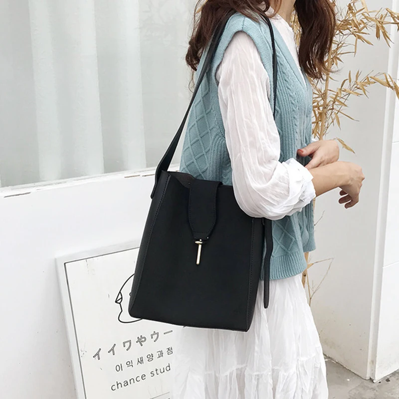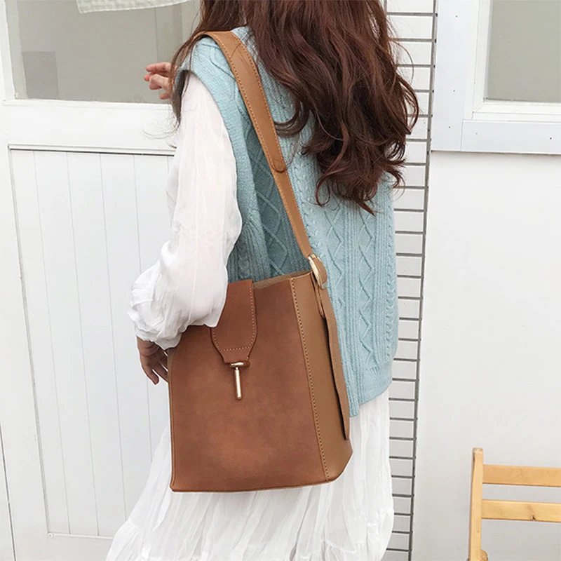 BEST SELLER Fashion pu leather women's bucket bag large capacity female composite bag casual shoulder vintage m