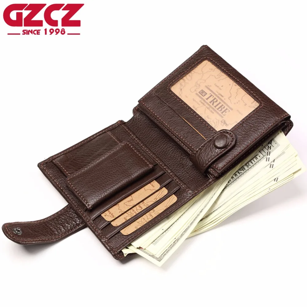 GZCZ Men's Genuine Leather Wallet Purse Coin Holder Male Walet Fashion Style PORTFOLIO MAN Slim Val