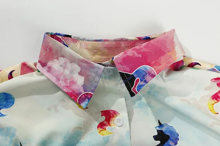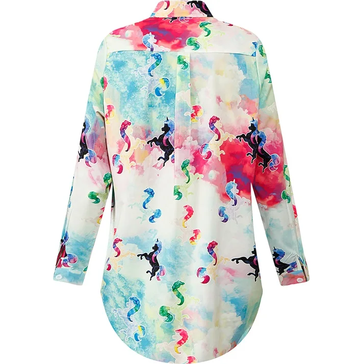 BEST QUALITY Chiffon Blouse for Women 2018 Spring Summer Galaxy Unicorn Painting Horse Print Long Sleeve Loose S