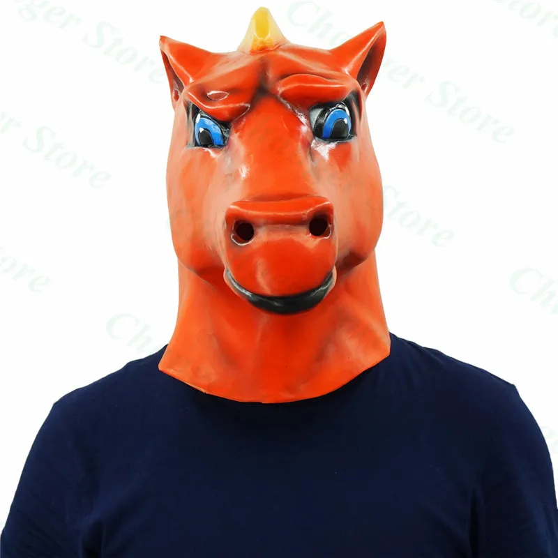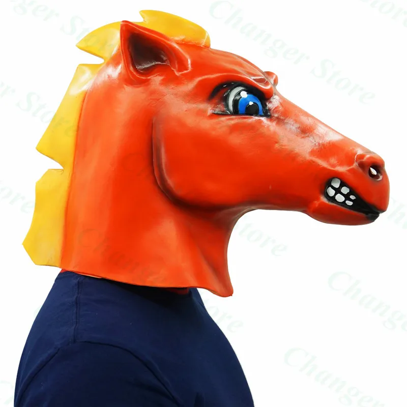 Red Horse Head Mask Funny Animal Party Helmet Cosplay Costume Halloween Props