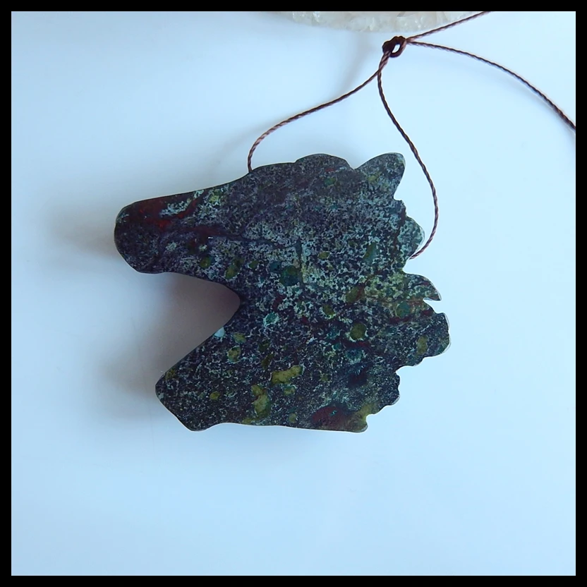 Wholesalehot salehand made Carved Horse head Dragons Blood Jasper Pendant for men42x40x7mm23g