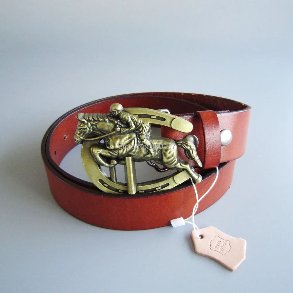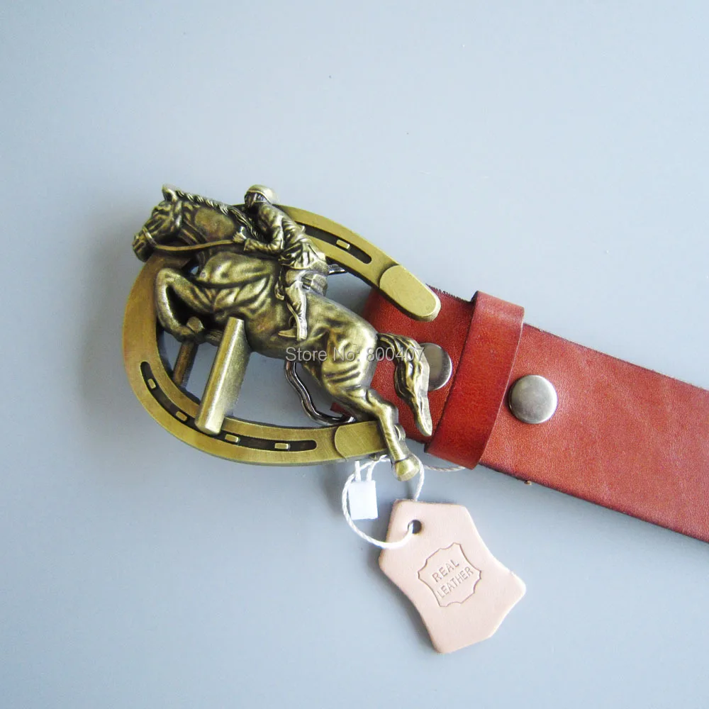 Best Seller Bronze Plated Original Horse Jumping Race Belt Buckle W Brown Genuine Leather Belt Gurtel Boucle de