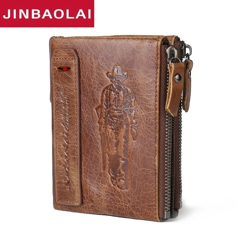 HIGH QUALITY JINBAOLAI HOT Genuine Crazy Horse Cowhide Leather Men Wallet Short Coin Purse Small Vintage Wallet