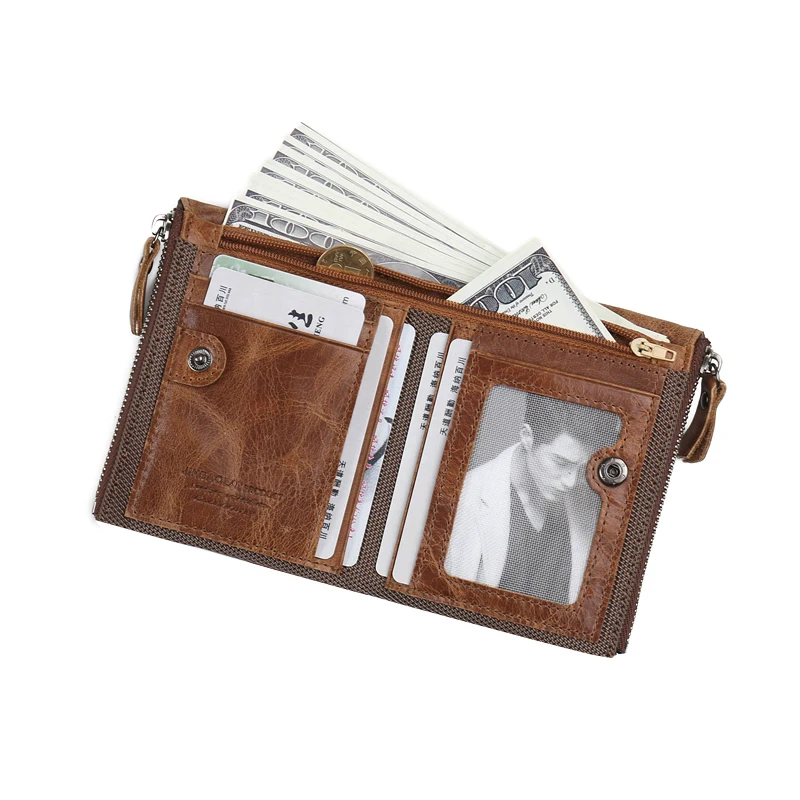 JINBAOLAI HOT Genuine Crazy Horse Cowhide Leather Men Wallet Short Coin Purse Small Vintage Wallet