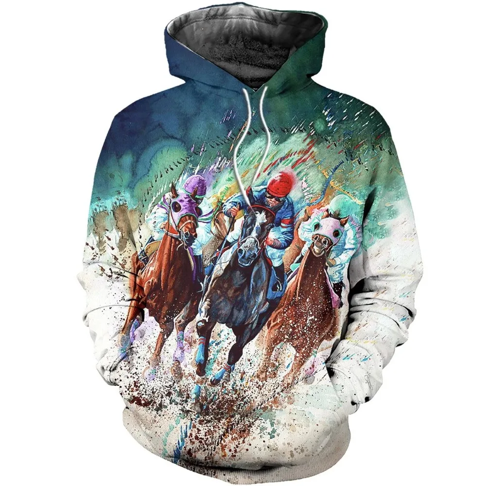 Best Liumaohua animal Champion medal horse racing 3d hoodies/Sweatshirt Winter autumn long selvee Haraju