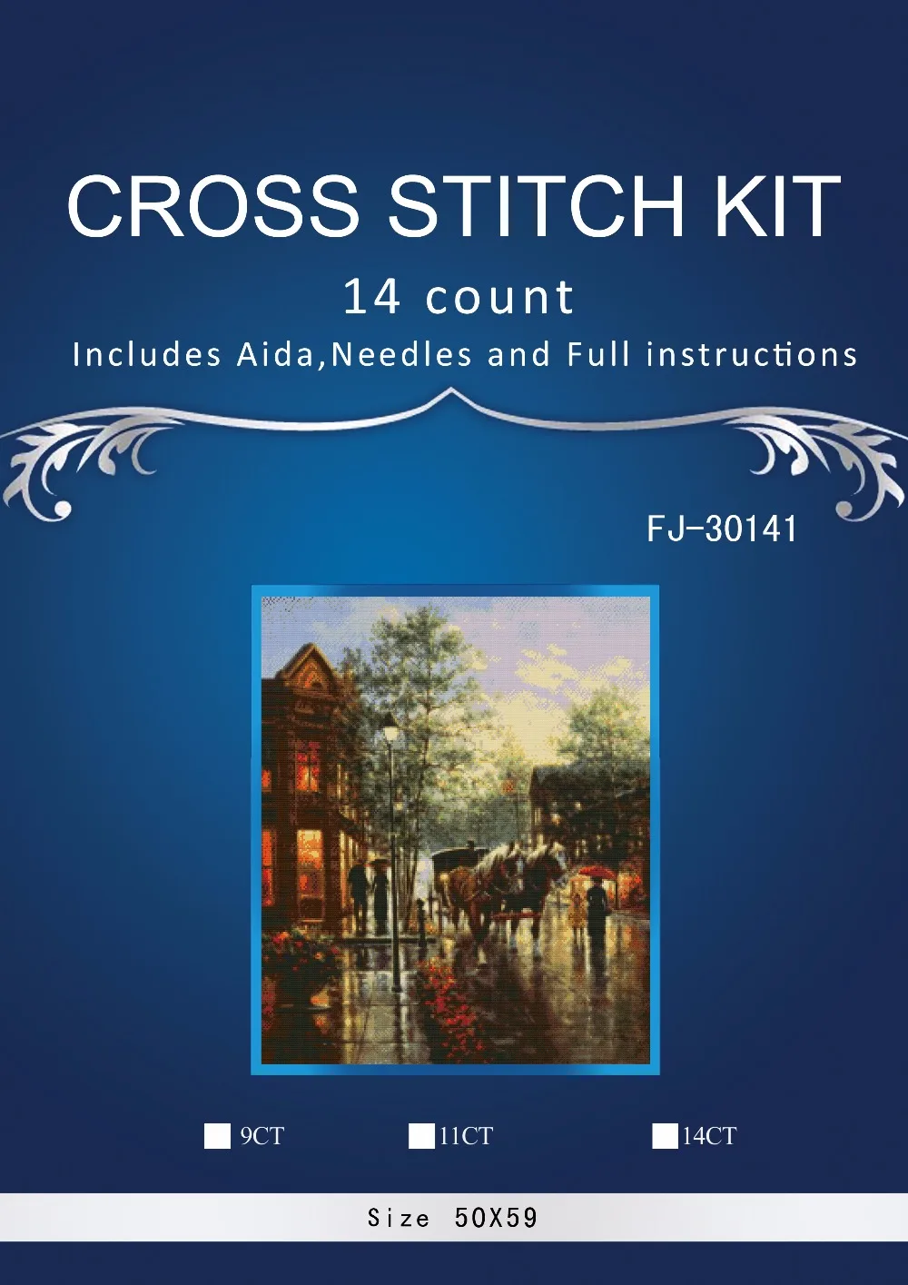 HIGH QUALITY Top Quality Counted Lovely Cute Cross Stitch Kit Sunset Rain Raining Street Evening Horse Carriage